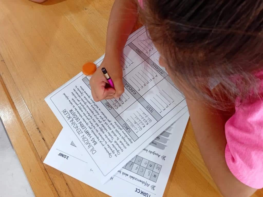 Öğretmen, proje kapsamında yeni öğrenilen kelimelerden bir kelime söylemeli ve öğrenciler bu kelimenin tüm harflerini yukarıdan aşağıya yazmalıdır. Öğrenciler yukarıdan aşağıya dizili olan harflerle başlayarak yeni sözcükler türetmelidir. Türetilen kelimeler yine proje kapsamında öğrenilen kelimelerden olmalıdır. Bu etkinlik daha çok gruplar oluşturularak yapılmalıdır. Öğrenciler bu aktiviteyle karşılıklı olarak yeni kelimeleri ve telaffuzlarını öğrenerek kelime haznelerini geliştirirler.